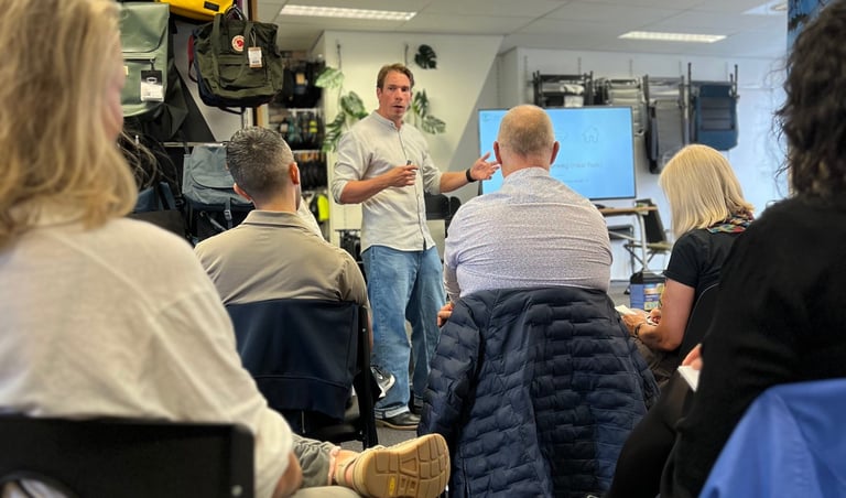 Praktische en interactieve sessies voor bedrijven en overheden, gericht op bewustwording en inspiratie.